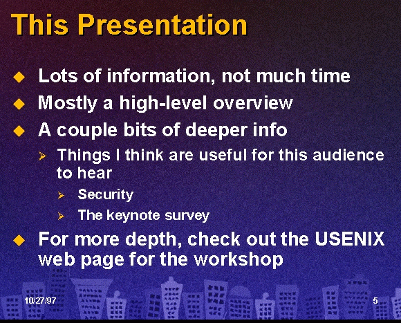 While I will be generally following the format of the workshop, I’ve re-arranged some things for dramatic effect (like moving the keynote survey until the end!).