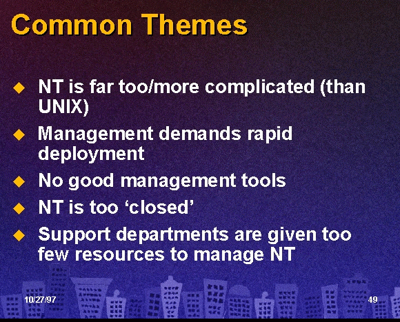 - Most people were facing rapid deployment issues. Management has to have NT everywhere RIGHT NOW!!!